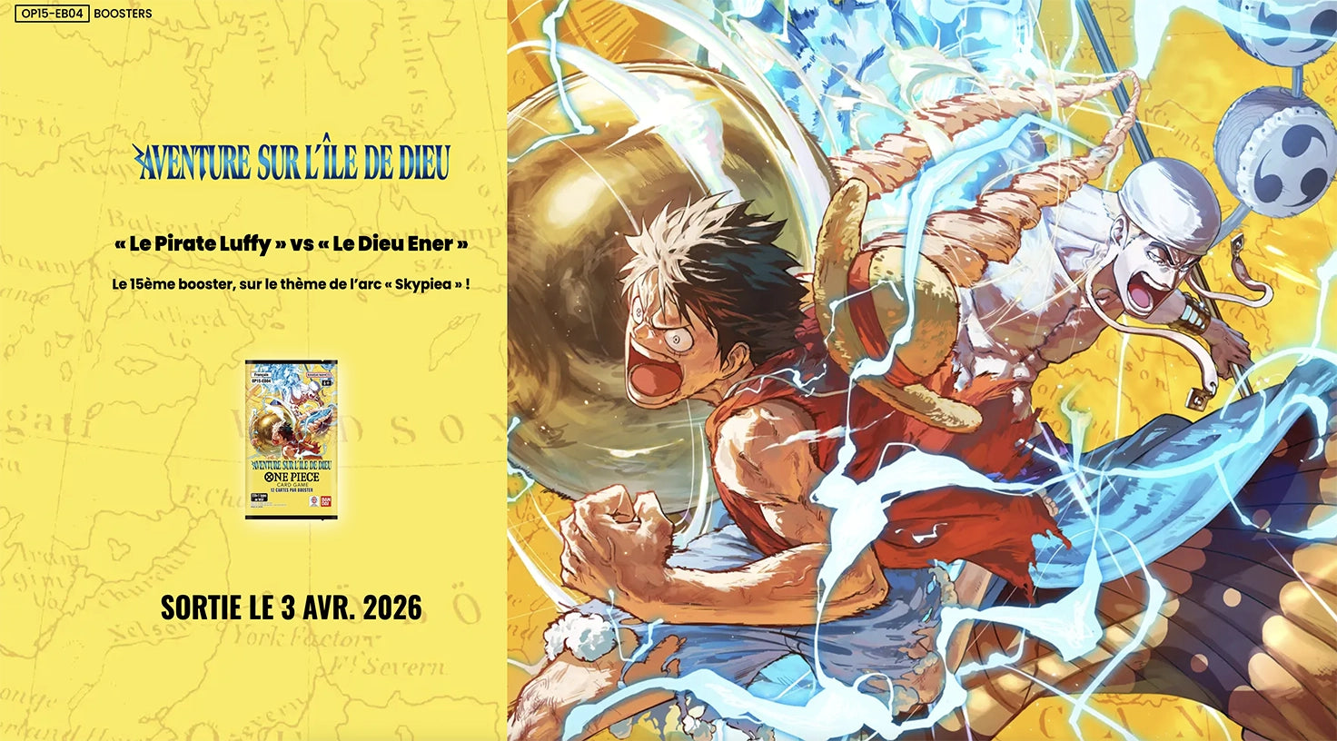 « Le Pirate Luffy » vs « Le Dieu Ener »Le 15ème booster, sur le thème de l’arc « Skypiea » !